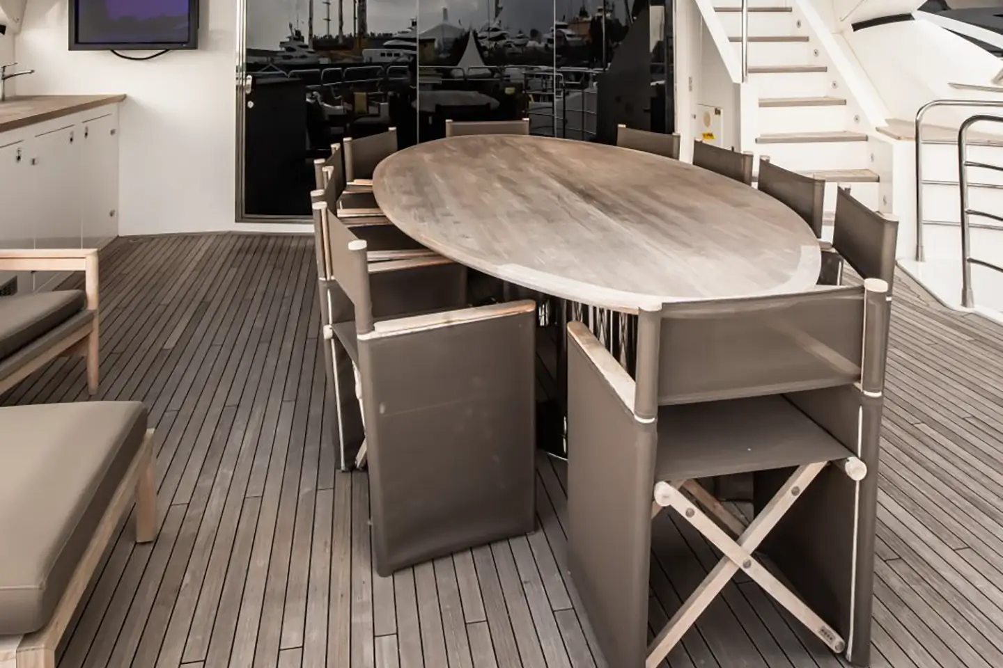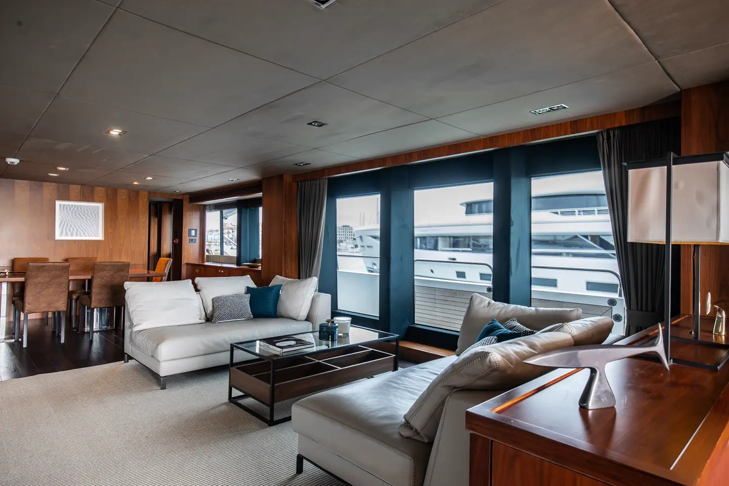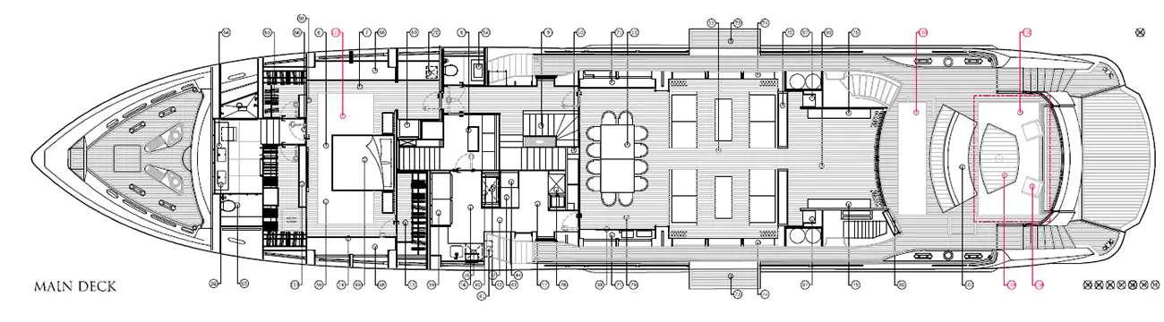 - Hlavní paluba: salón, jídelna, kuchyně, balkon, denní toaleta