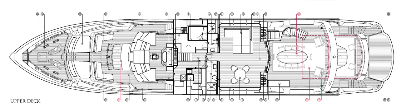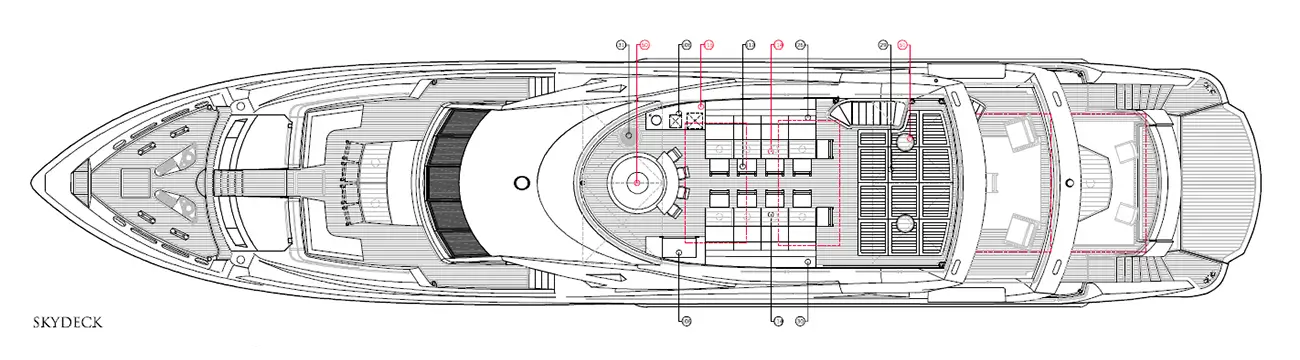 - Sluneční paluba: salonek, jídelna, vířivka s barem, lehátka