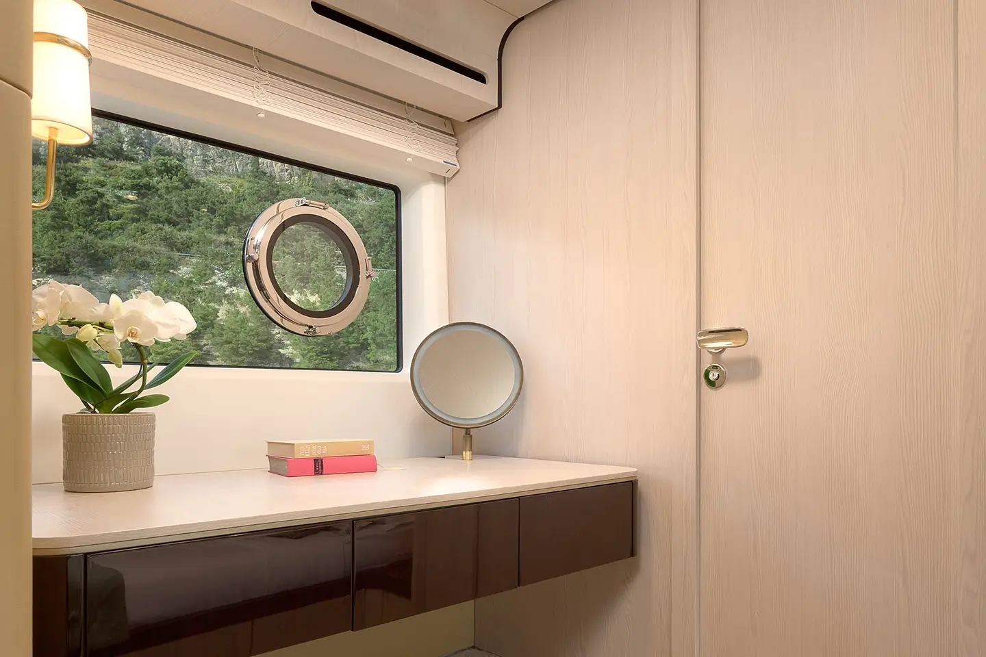 - Nábytek v kokpitu s teakovou deskou