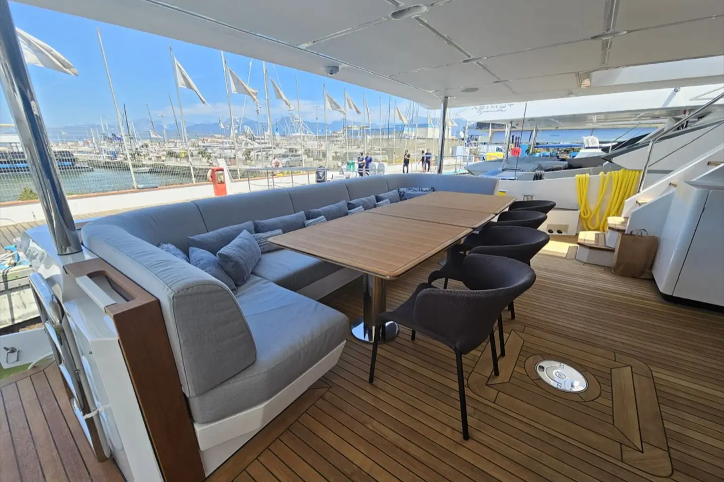 • 2× křesla Minotti Tape Cord na zadní části flybridge
