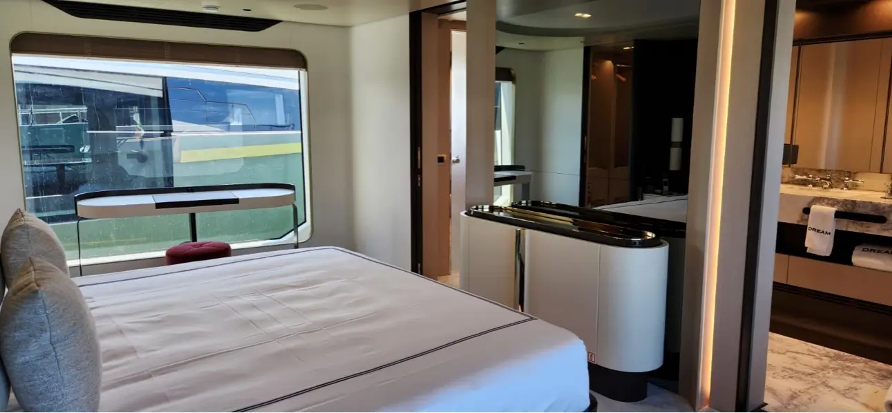 • Další externí zásuvky: 2× na zádi flybridge (pro posilovací zařízení), 1× v plážové části nad mramorovou deskou