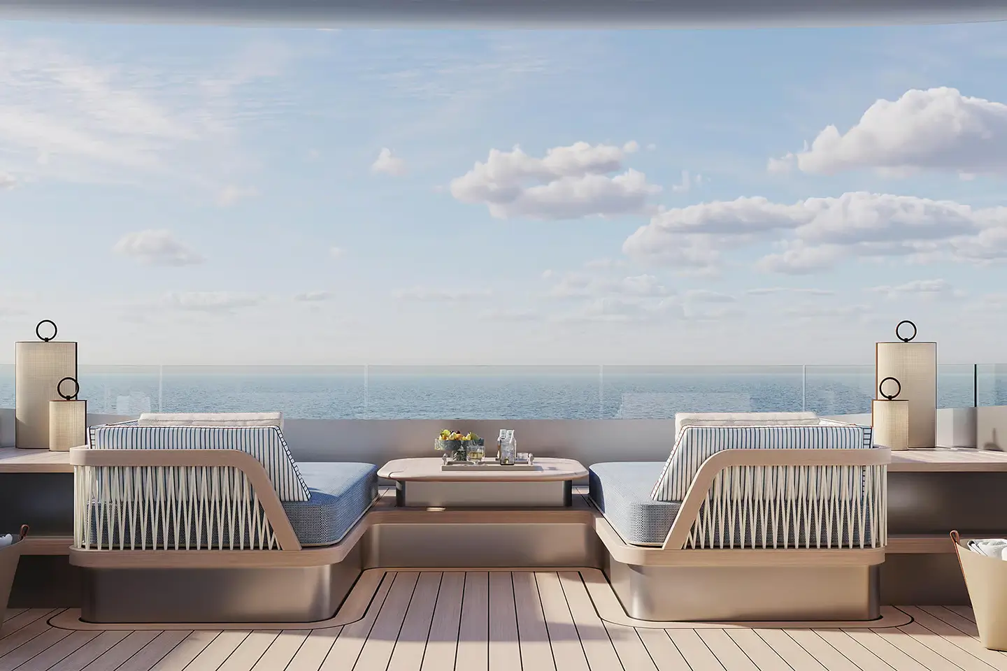 • Panoramatický Apartmán majitele na horní palubě s privátním lobby, terasou a nerušeným výhledem na moře