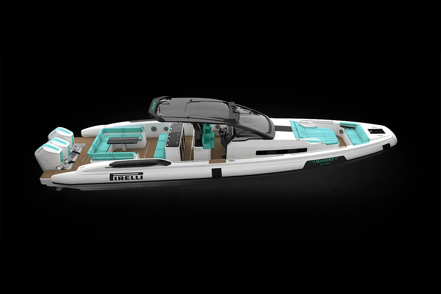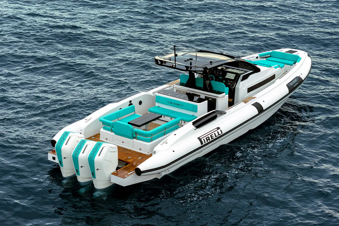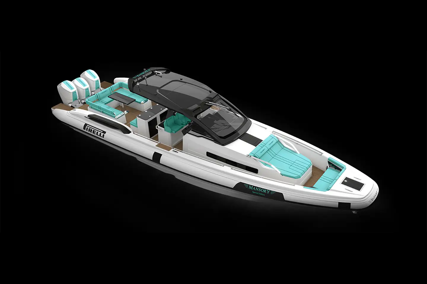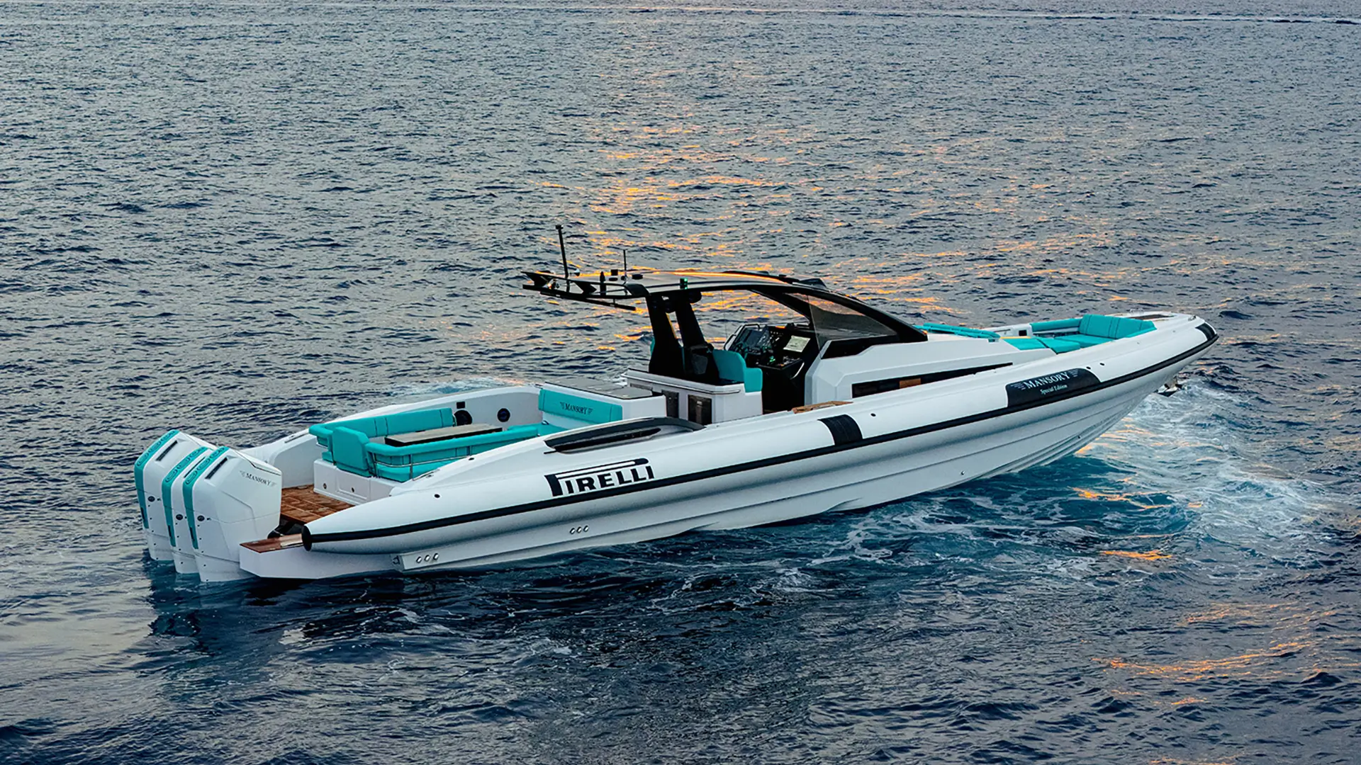 PIRELLI 50 MANSORY Special Edition je vlajkovou lodí řady Pirelli Speedboats, upravenou německým luxusním tunerem MANSORY s personalizovanými vylepšeními v technologii, obytných prostorech a estetice.