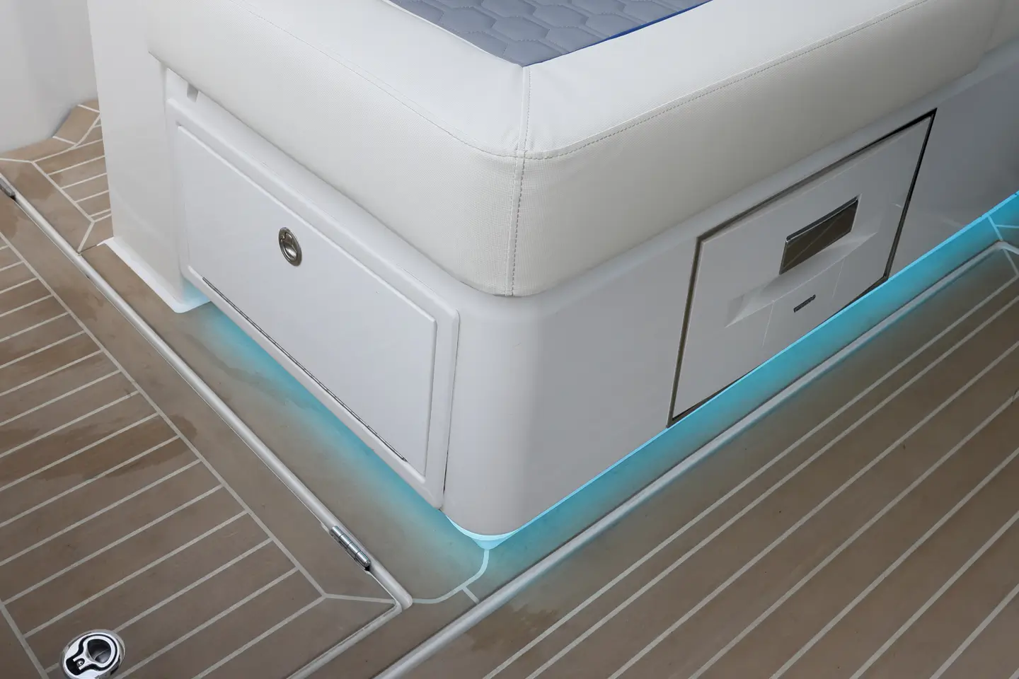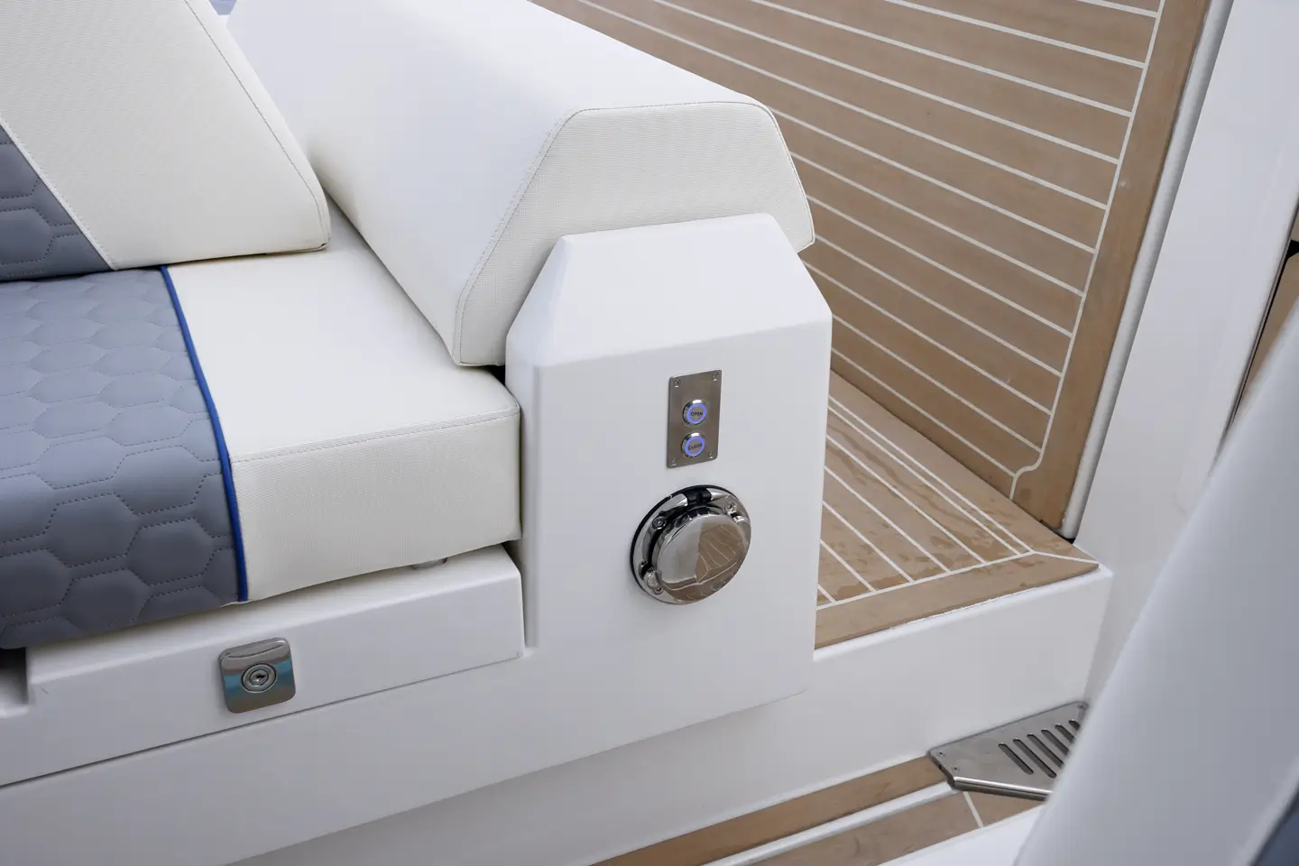 Das raffinierte Cockpit des SR40 wurde speziell für den Steuermann und die Passagiere entwickelt und bietet die legendäre Ergonomie von Windy mit großen Schiebetüren an den Seiten, die Schutz vor den Elementen bieten. Das Layout des Bootes schafft ein geräumiges Gefühl, und das offene Design ermöglicht nahtlosen Outdoor-Genuss. Das SR40 reiht sich zwischen unseren Classic