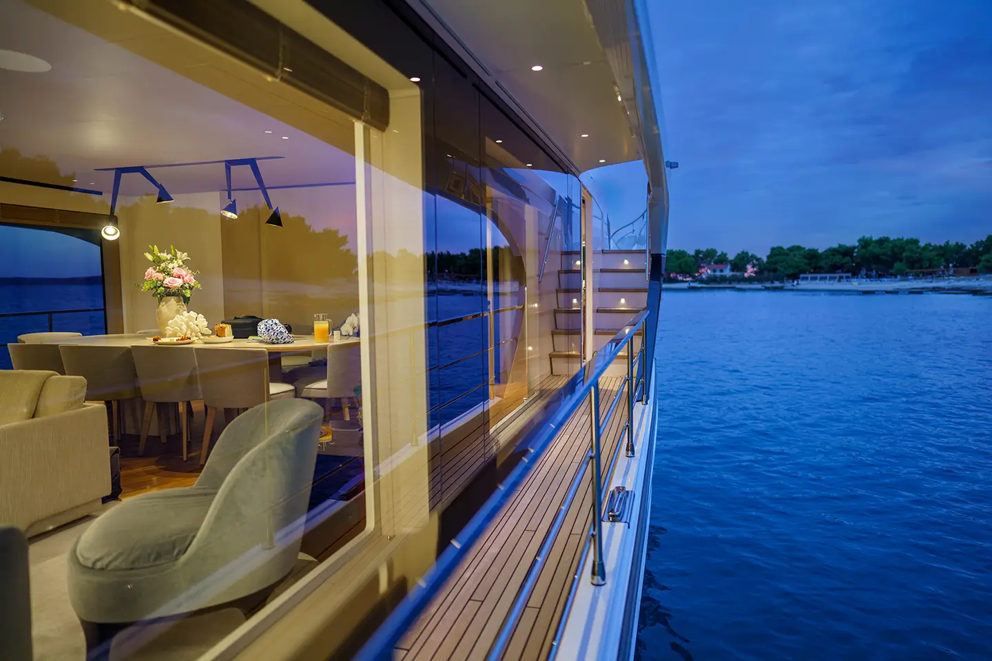 - Automatske ljestve od nehrđajućeg čelika koje povezuju krmu s platformom za kupanje