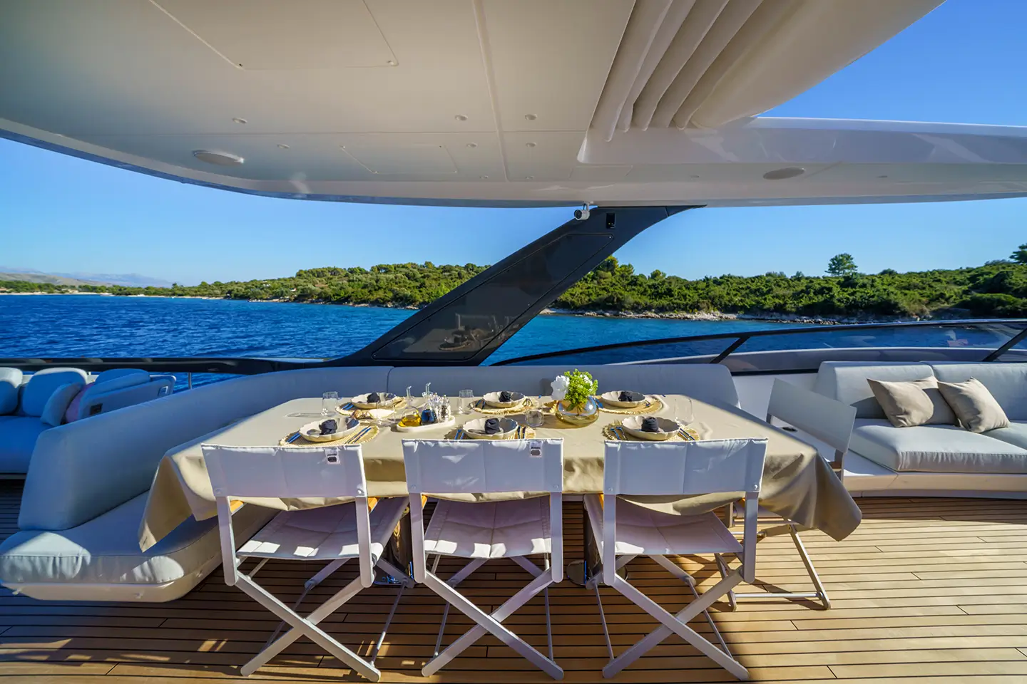 - Bimini tenda na stražnjem dijelu flybridgea s uklonjivim stupovima