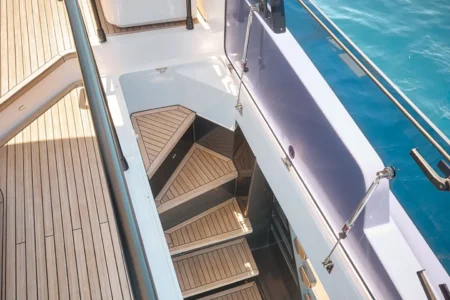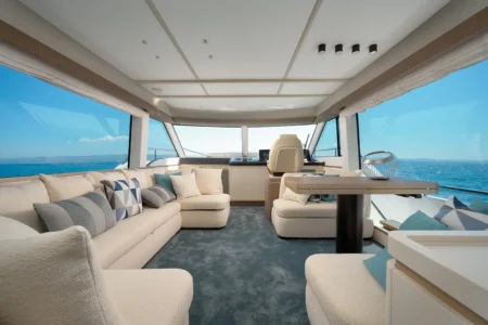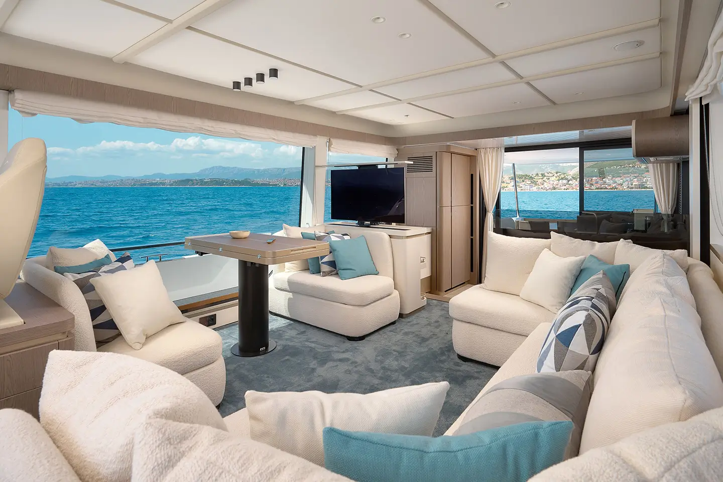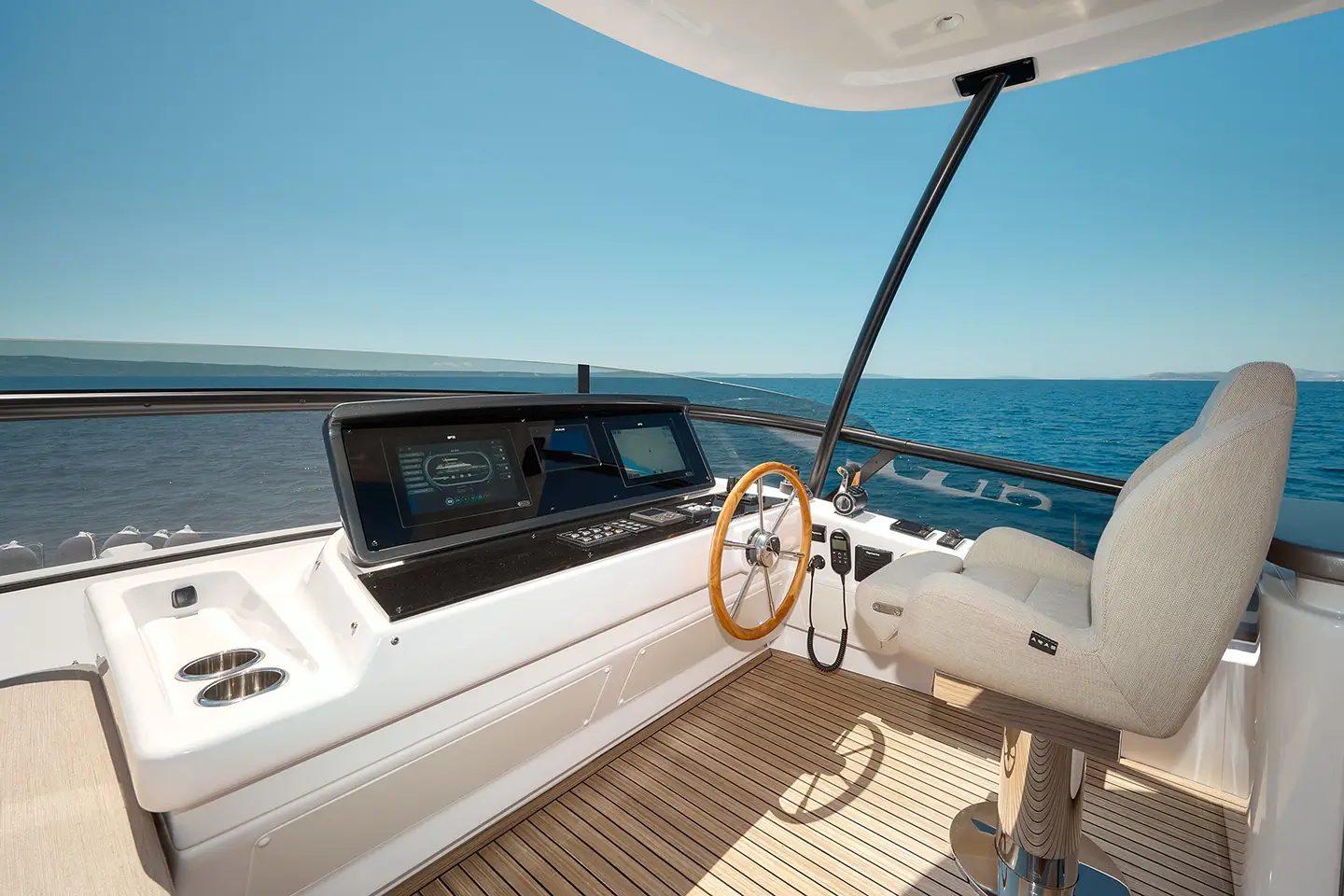 Kokpit je velik i prostire se uzdužno, ostavljajući stražnji stakleni parapet slobodnim, što nudi spektakularan pogled na horizont. Stol se može podići, pretvarajući terasu u ugodan prostor za objedovanje.