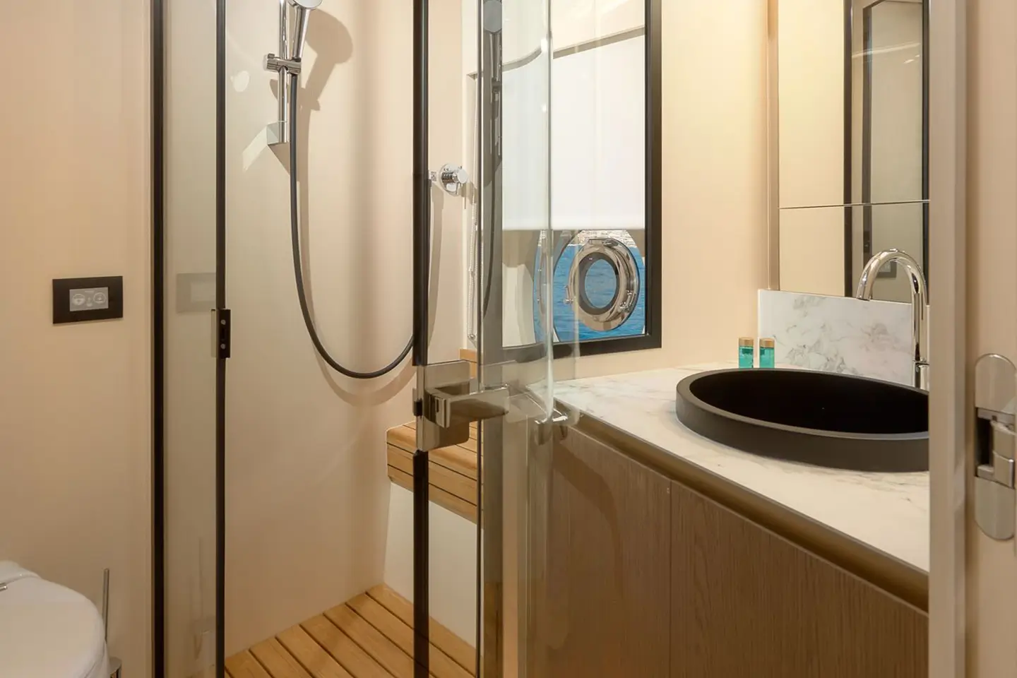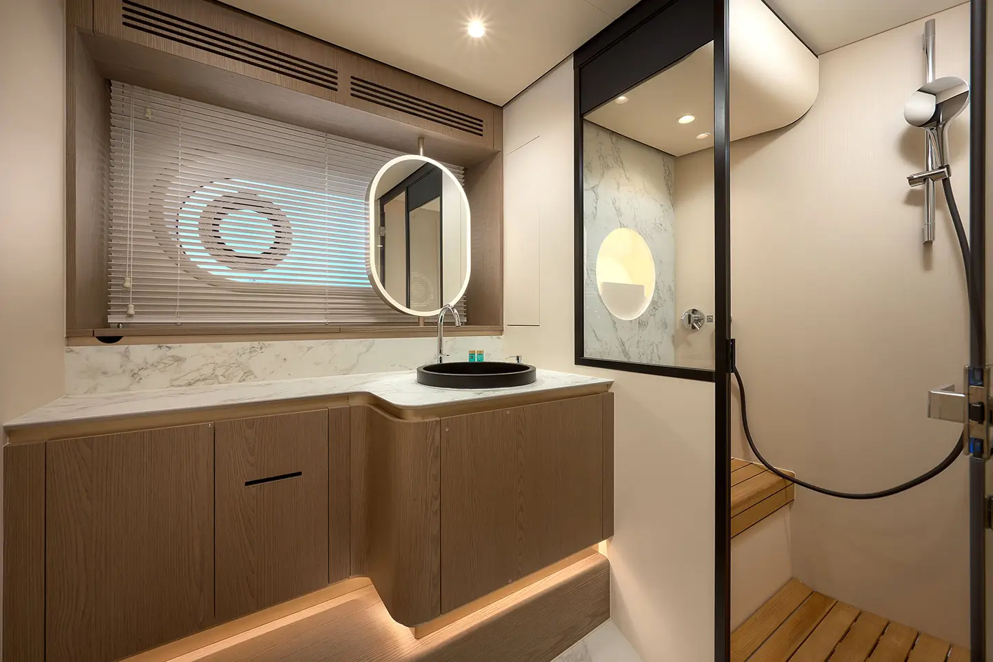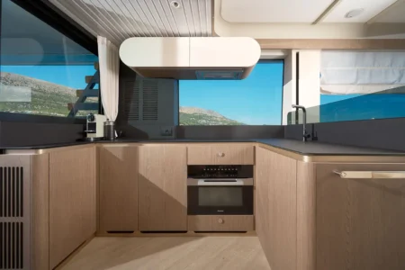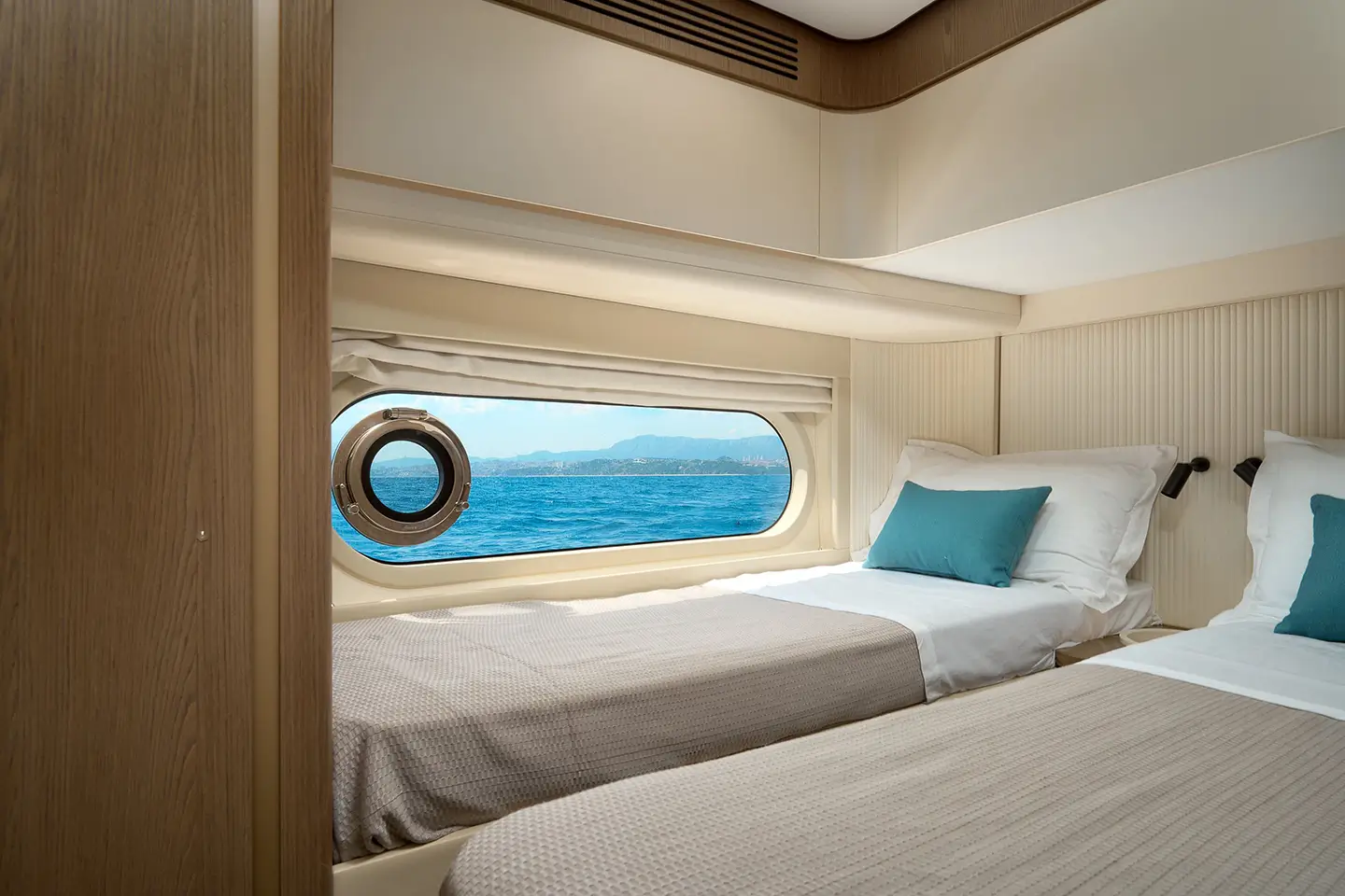 Kokpit je velik i prostire se uzdužno, ostavljajući stražnji stakleni parapet slobodnim, što nudi spektakularan pogled na horizont. Stol se može podići, pretvarajući terasu u ugodan prostor za objedovanje.