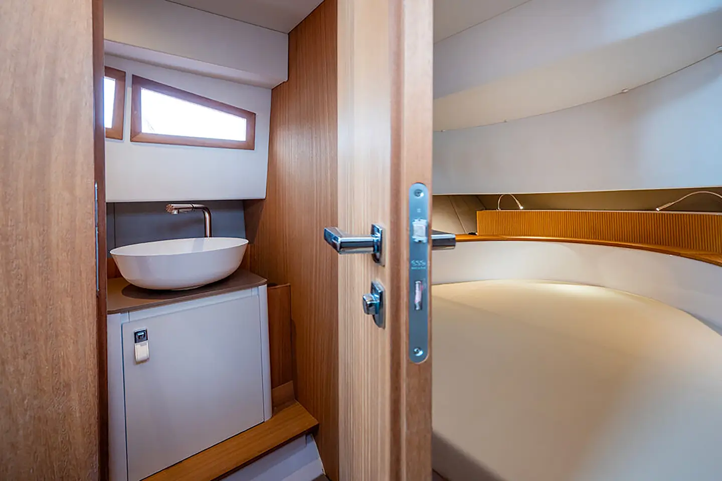 - Prostrana dvokrevetna pramčana kabina koja se proteže do pramca