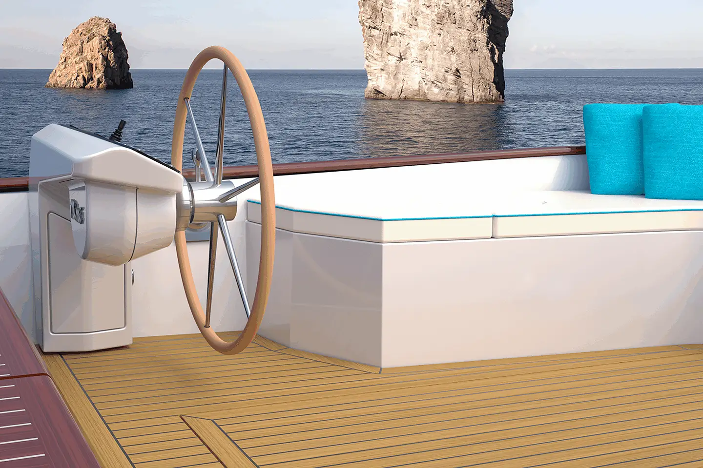 - Masivna drvena paluba skriva kompozitni (fiberglass) prostor ispod jastuka