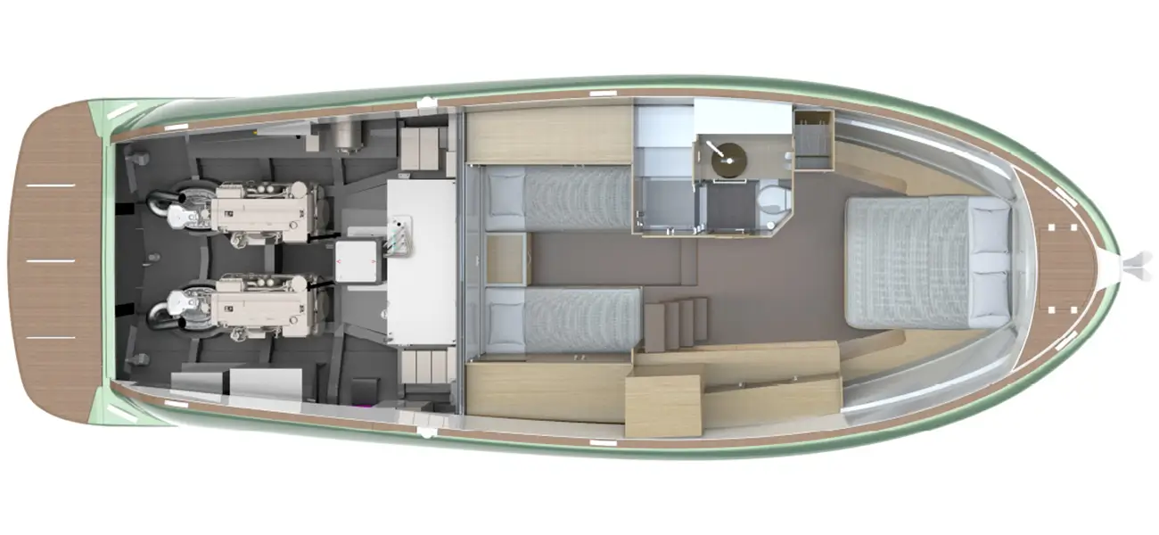 - Opcionalni motori: 2 × Volvo Penta D6 IPS 600 (320 kW / 435 KS svaki)