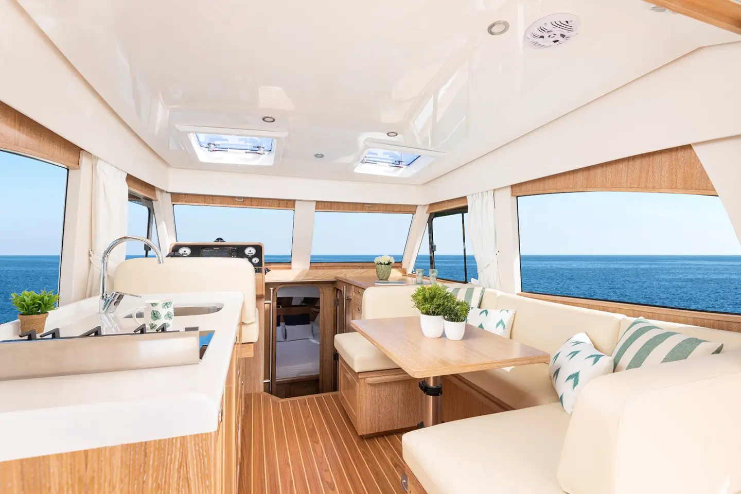A timeless cruising yacht inspired by classic Mediterranean design, this 35-foot model by Sasga Yachts combines traditional lines with modern engineering. Designed for comfortable coastal cruising, it offers reliable performance, efficient systems, and a warm, elegant interior layout.